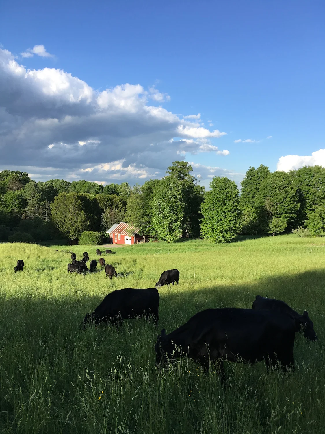 We purchase in beef cattle when they are 1 - 2 years old from 100% grass-fed farms, and finish them on pasture from May - October. Robinson Hill Beef has sourced cattle from three farms outside of our own over the years. In the past few years we have also had a number of cattle butchered who were born on our farm - the results of Angus / Holstein heifers and cows crossed with an American Devon bull. We are currently sourcing our cattle from Sunrise Farm in Essex, NY - just across Lake Champlain. Sunrise has a 100% grass fed Hereford cow / calf and hay farm and I’ve had a great experience thus far working with the animals and the owner of the farm, Donald. For two seasons we grazed American Devons who came from Royal Larocque. Royal owned the Royal Butcher (a USDA inspected processing facility in Braintree) and has been raising grass fed and finished beef himself for a number of years. Previously, we sourced animals from the Berway Farm and Creamery, about an hour southeast of Montpelier in the Connecticut River Valley. Shirley and Wayne Tullar raise Certified Organic Grass-Fed cattle on their family farm for milk and meat. They've historically raised Holsteins and Milking Shorthorns, but have in recent years begun to breed in Angus for beef production. The animals that we have most recently gotten from them are 1/2-3/4 Angus and 1/4 - 1/2 Holstein.